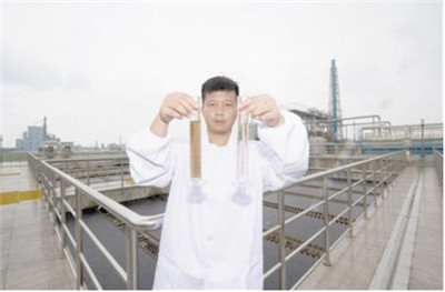 浙江省绍兴市持续推进化工行业的改造提升,全面腾退杭州湾上虞经济技术开发区外化工企业,对开发区内企业进行兼并重组和改造提升,落地应用一批新工艺、新技术,实现人工监管向智能监管转变,加快推动化工产业“一园式”集聚。图为8月2日,工作人员在上虞区水处理发展有限责任公司污水处理池展示进出水对比。新华社记者翁忻旸摄