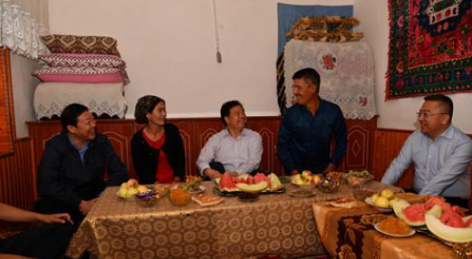 在加尕斯台乡贫困户塔西·买买提的家中,王宜林在主人的热情邀请下,坐在炕头上,与塔西·买买提一家聊起了家常,并仔细询问他们还有什么困难需要帮助。塔西·买买提告诉王宜林,在党和政府以及中国石油的大力帮扶下,他的全家已经脱贫了,大儿子还到南京上了大学,感谢党和政府、感谢中国石油。王宜林把中国石油的慰问金送到他们手中,祝福他们全家日子越来越好,幸福生活越来越甜。塔西·买买提和妻子激动地拉起王宜林的手,连声说道,谢谢中国石油。
