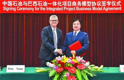 10月16日,集团公司董事长王宜林会见了来访的巴西国家石油公司首席执行官伊万·蒙泰罗一行,双方就加强在巴现有项目上下游一体化合作广泛交换意见。会后,双方共同签署《一体化项目商务模型协议》。王仲才参加活动。