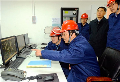 11月28日,戴厚良在石家庄炼化硫酸烷基化装置外操室了解生产运行情况。本报 记者 章铮 摄