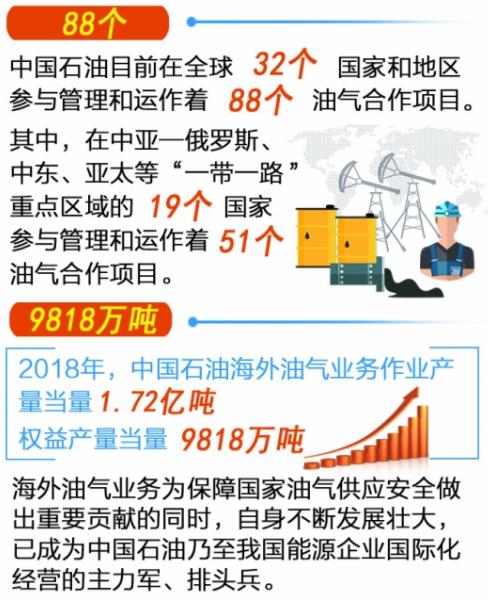 [中国石油新闻中心2019-01-17]在25年国际化经营开放、合作、共赢理念指引下,2018年,中国石油海外油气业务牢牢把握“一带一路”战略机遇,油气权益产量当量首次超过9800万吨,对外合作油气产量突破1000万吨,中国石油在国际油气市场的竞争力和影响力持续提升。一批重点工程相继投产,上中下游全产业链建设全面提速。在中亚,“一带一路”重点项目哈萨克斯坦奇姆肯特炼油厂现代化改造项目二期工程于2018年9月28日投产;天然气冬季保供重点工程土库曼斯坦萨曼杰佩增压站二期工程于10月29日投产;在俄罗斯,中俄两国目前最大的经济合作项目亚马尔液化天然气项目11月21日全面建成投产;在中东,哈法亚三期项目12月12日建成投产,标志着哈法亚项目提前迈进2000万吨级油田行列;在非洲,停产5年的南苏丹1/2/4区项目于12月中旬正式进入复产效益回收新阶段。