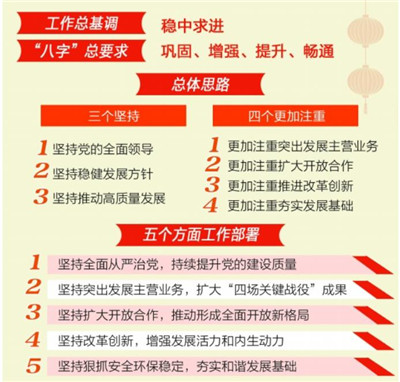 大变局方显大担当。2019年是新中国成立70周年,也是全面建成小康社会的关键之年。集团公司在统筹考虑公司内外部环境和条件变化,特别是承担央企责任使命、推动高质量发展新要求的基础上,对今年工作提出“稳中求进”总基调和“八字”总要求,“三个坚持、四个更加注重”的总体思路,五个方面工作部署,以及生产经营工作九项任务,体现了务实进取的态度、谋时乘势的智慧,更彰显了做党和国家最可信赖的骨干力量的责任担当。