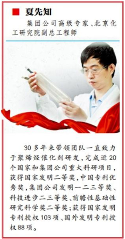 作为集团公司聚丙烯领域的领军专家、北京化工研究院副总工程师,夏先知带领团队苦心钻研球形聚丙烯催化剂技术,突破国外技术封锁,致力自主研发,发现了具有全新组成的新球形载体材料并成功应用于催化剂开发生产中,掌握了催化剂研发的主动权,为我国聚丙烯催化剂事业在国际舞台上争得一席之地。