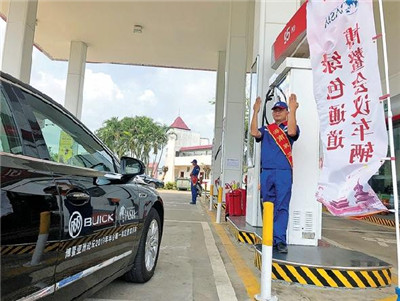 博鳌亚洲论坛2019年会于3月26日~29日在海南博鳌举办。海南石油统筹全省油库资源调配,提前备足重要站点油品,精心安排重要路段及站点油品配送工作,并对2座油库、6座加油站20个批次油样进行抽检,对管线、油库及加油站进行安全检查,确保年会期间安全高效供应。图为加油站员工引导年会用车进入绿色通道并提供贴心服务。