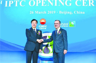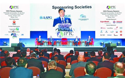 中国石油网消息 (记者张舒雅 周问雪)3月26日上午,北京国际会议中心内,第十一届国际石油技术大会名誉主席、中国石油集团董事长王宜林与沙特阿美公司总裁兼首席执行官纳瑟尔共同按下启动键,三色丝绸汇聚成大会会标投射到背景屏幕上,犹如含苞待放的花朵,又如缓缓燃烧的火焰。第十一届国际石油技术大会(IPTC)正式开幕。中国石油集团总经理张伟、中国石油集团副总经理侯启军出席会议。