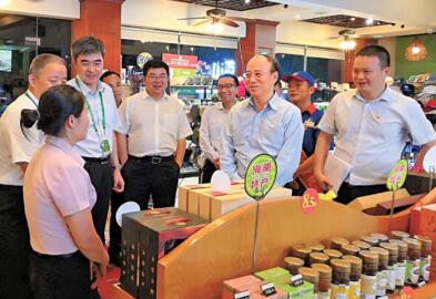 3月27日晚,中国石化集团公司董事长戴厚良走进海南石油环岛东线高速中原西加油站,看望慰问一线员工,详细了解油站经营状况和非油品销售情况,勉励大家以优质的产品、热情的服务,迎接八方来宾,确保博鳌论坛顺利举办。图为戴厚良询问员工加油站非油品销售情况。