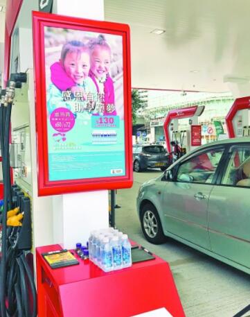 中国石化香港公司2018年5月起开展“感恩有您 助学筑梦”活动,将卓玛泉销售额的8%捐赠给西藏地区儿童教育事业,受到顾客广泛关注,2018年销售卓玛泉234万瓶,截至目前累计捐款达100万元港币。图1为葵涌货柜码头路加油站捐资助学公益广告。图2为员工为顾客加油。