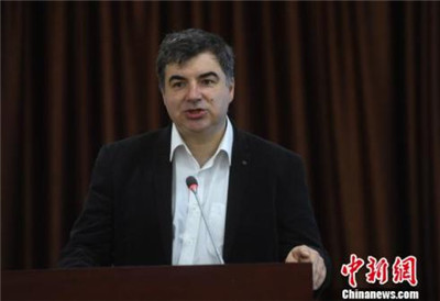 图为2010年诺贝尔物理学奖获得者、石墨烯发现人之一的诺沃肖洛夫教授在签约活动上致辞。