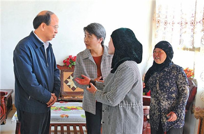 5月22日,戴厚良一行来到东乡族自治县高山乡洒勒村村民马舍二巴家中看望慰问并查看帮扶项目。本报记者 章铮 摄