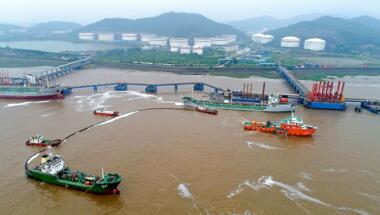 镇海炼化算山码头举行溢油应急演练(图)