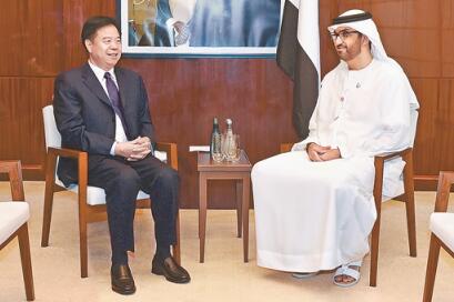 7月23日上午,中国石油集团董事长王宜林会见了阿联酋国务部长、阿布扎比国家石油公司首席执行官贾贝尔。双方就进一步推动油气领域合作深入交换了意见。王仲才、李越强等参加会。