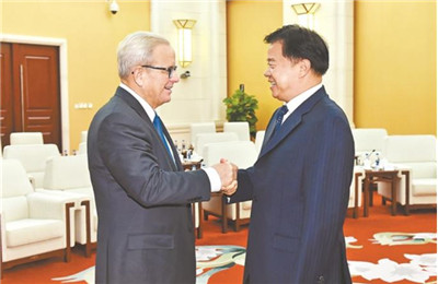 记者常正乐摄中国石油网消息10月16日上午,中国石油集团董事长王宜林在北京会见了来访的壳牌集团董事长贺利德一行。双方就进一步推动全方位友好合作深入交换了意见。股份公司副总裁王仲才参加会见。