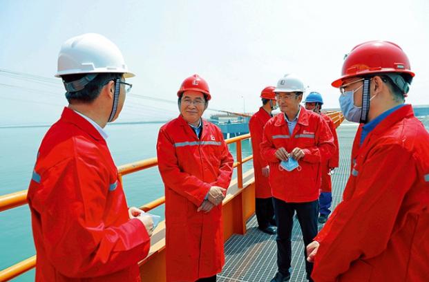 5月1日,张玉卓在天然气分公司天津LNG接卸码头现场调研。
