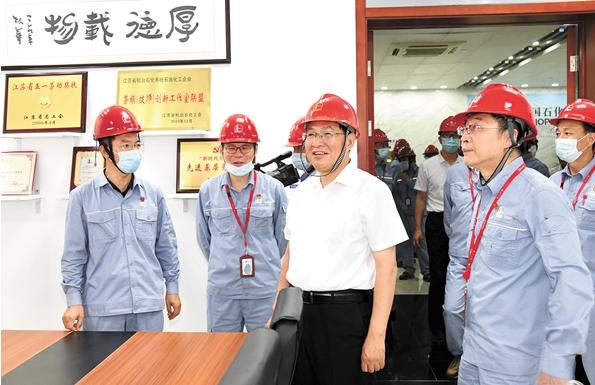 7月7日~8日,集团公司董事长、党组书记张玉卓到公司驻江苏企业调研,深入生产一线和装置现场,看望慰问干部员工,听取工作汇报,要求驻江苏企业以习近平新时代中国特色社会主义思想为指导,认真贯彻落实“共抓大保护、不搞大开发”要求,积极融入长江经济带、长三角区域一体化发展战略,瞄准建设世界领先洁净能源化工企业目标,围绕构建“一基两翼三新”发展格局,坚定信心、乘势而上,持续做强做优做大,不断推进高质量可持续发展。7月7日,张玉卓参加公司驻江苏企业工作座谈会。会上,江苏油田、华东油气、金陵石化、扬子石化、仪征化纤、南化公司、江苏石油做工作汇报,管道公司、华东石油工程公司、南京工程公司、物探研究院、化销江苏做书面汇报。