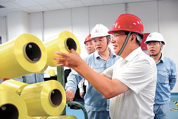 7月8日,张玉卓一行来到仪征化纤短纤部、高纤部生产车间详细了解生产情况。