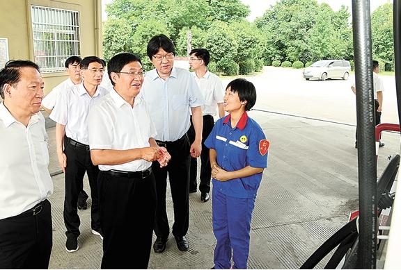 8月12日,张玉卓一行在安徽石油红星(西)加油站调研。本报记者 程阳 张绪东 摄影报道