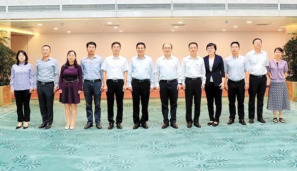 9月19日,张玉卓、赵东与第六批援疆干部及其家属合影。