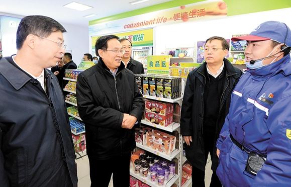 12月9日,张玉卓一行在陕西榆林石油拓新加油站调研。本报记者程阳马保迁摄影报道