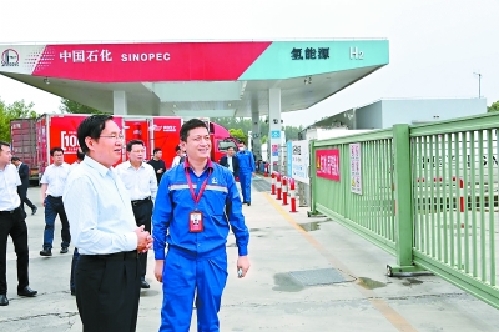 5月11日上午,张玉卓来到上海石油安智油氢合建站,了解加氢装置工艺流程及安全生产经营情况。