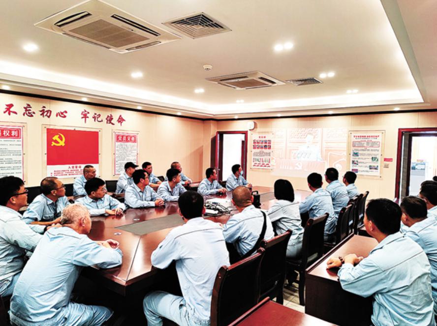 中科炼化组织党员干部员工收看大会直播。会后,大家纷纷分享心得体会。聂冬生摄