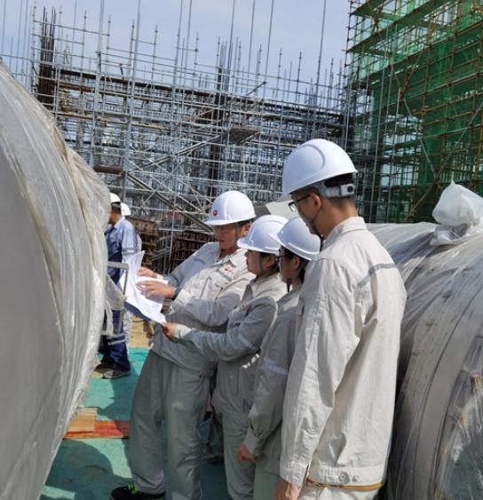 物资采购中心抽调各部门精干青年员工成立了驻广东石化现场工作组。除一名带队领导外,这支队伍年龄均在35岁以下,他们肩负责任和使命,以“靠前服务、锤炼队伍”为行动指南,从持续学习、沉潜领悟,到制定方案、精准落实,再到催交催运、排除万难,每一步都落笔千钧、实干作答。