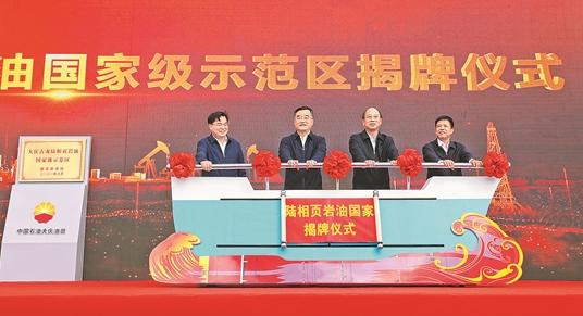 8月28日,大庆古龙陆相页岩油国家级示范区建设推进会暨示范区揭牌和古页油平1井揭碑仪式举行,标志着大庆油田古龙页岩油发展进入了新阶段。黑龙江省委书记、省人大常委会主任张庆伟,省委副书记、省长胡昌升,中国石油集团董事长、党组书记戴厚良,国家能源局总经济师郭智,共同为示范区揭牌。张庆伟、戴厚良共同为古页油平1井碑体揭幕。郭智宣读设立大庆古龙陆相页岩油国家级示范区的批复。