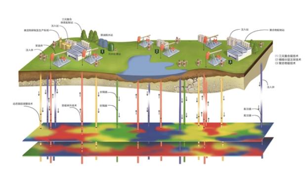 形成化学驱后提高采收率技术,实现剩余潜力深度挖潜。大庆油田研发出适应化学驱后油层聚表剂和弱碱三元体系配方,现场试验提高采收率达到预期,较“十二五”开展高浓度聚驱试验多提高了采收率两个百分点以上,取得显著技术经济效益;创新提出自适应堵调驱一体化前沿技术理念,研发自适应堵调驱体系配方,先导性试验节约化学剂用量18%。