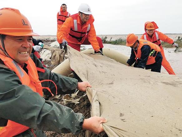 胜利油田在黄河滩区内有上千口油水井。10月4日上午,胜利油田紧急启动黄河防汛突发事件专项应急预案,各单位积极做好黄河控导工程加高加固、巡堤查验、应急撤离准备等工作。截至10月7日14时,胜利油田累计组织应急抢险人员1000余人次,动用大型设备100余台,抛石1200立方米。目前,黄河防汛工作整体平稳,汛情风险受控,群众生命财产安全得到有效保障。图为胜利油田员工在抢险。