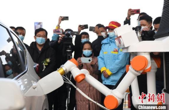 图为中国首个高原室外防爆加油机器人启动仪式现场。
