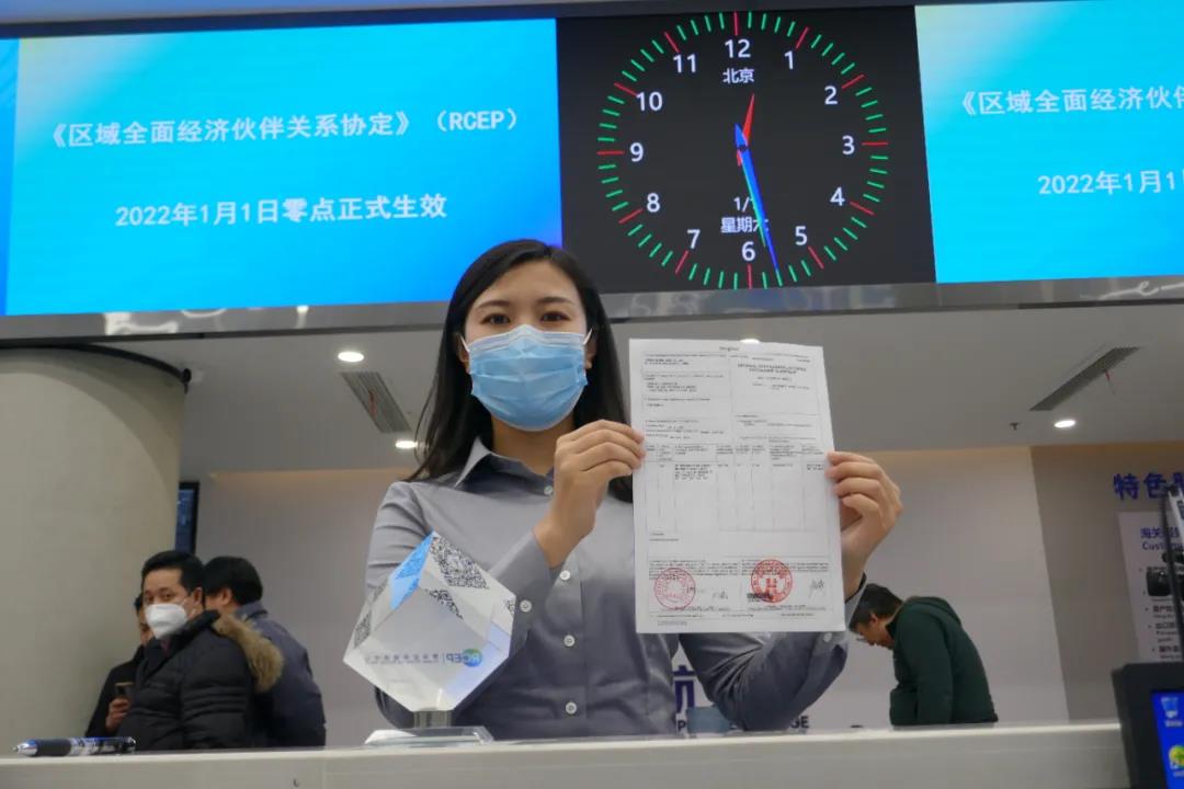 1月1日,青岛海关为青岛海湾集团有限公司出口到日本的一批2800余吨氯化钙签发了全国首份RCEP原产地证书。凭借这份证书,该公司的货物到日本后缴纳的关税税率可由3.3%降为3%。