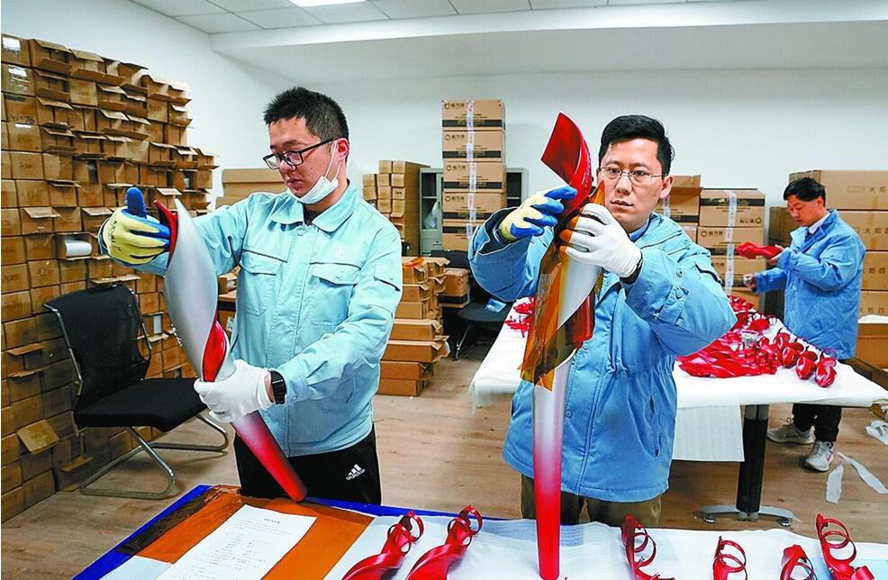 图为上海石化冬奥火炬量产团队元旦期间组装火炬“飞扬”。李英豪摄