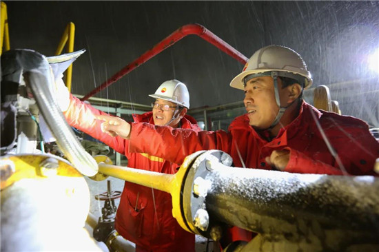 为保障极端天气下油气平稳生产,大庆、长庆、塔里木、辽河、华北、大港等油气生产企业多举措加强低温环境下的设备运行管理,党员领导干部带头值班值守,加密巡检频次,上产势头强劲。从2月1日至13日,长庆油田天然气日均产量超1.48亿立方米,为冬奥冬供用气提供坚强保障。塔里木油田库车山前三项排水采气冬供重点工程相继投产,气藏采收率显著提高。与此同时,西部钻探、川庆钻探、中油测井等工程技术服务企业升级管理,提前为员工配备了防寒保暖物资,争分夺秒为油气上产保驾护航。西部钻探准东钻井公司70126钻井队队长黄龙说:“队员们的保暖物资、设备保暖设施均已提前到位。”