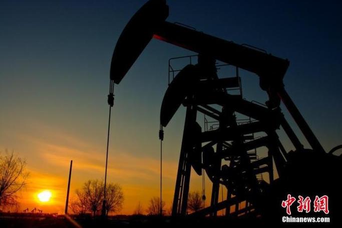 资料图:大庆油田一处采油机在夕阳下工作。