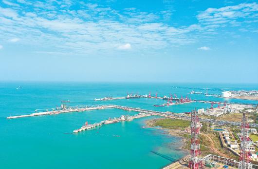 图为4月11日,蓝天下的海南炼化成品油码头。吴淑汕摄李强王梦璐