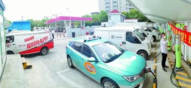 图3:上海石油全力服务上海分阶段复商复市,5月1日至18日,4座在营充电站已累计向城市运行保障车辆提供充电服务8967车次。图为5月15日,新泾加油站为城市运行保障车辆提供充电服务。