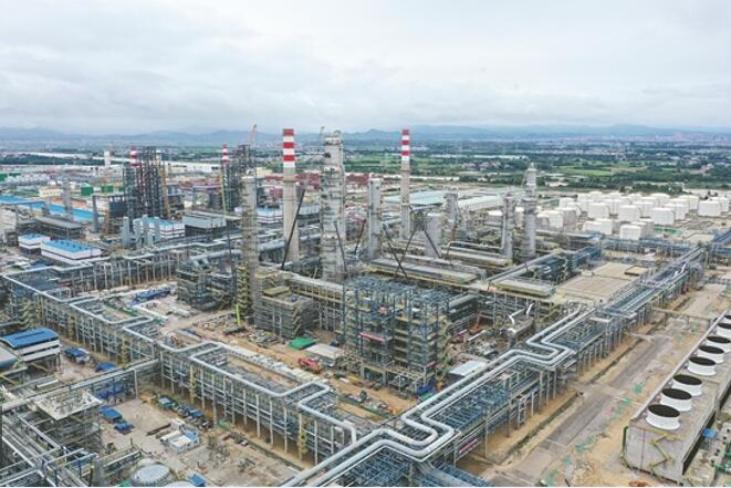 图为在广东石化炼化一体化项目中,目前全球单套生产能力最大的芳烃装置——年260万吨芳烃联合装置正在紧锣密鼓建设。马晨昊王宽龙摄影报道