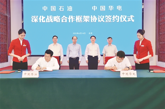 6月14日,中国石油与中国华电在北京签署深化战略合作框架协议。常正乐 摄