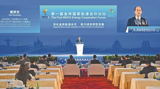 中国石油集团董事长戴厚良在第一届金砖国家能源合作论坛致辞。