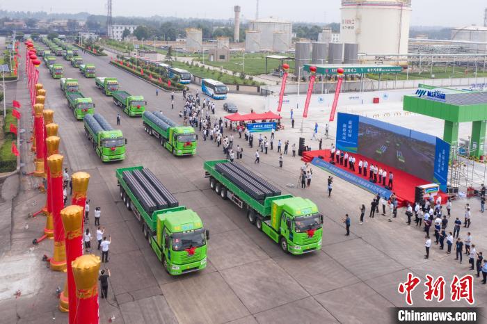 山西省首批氢能产业链“链主”企业——晋南钢铁集团首批300辆氢能重卡的交付投运。任丽娜摄