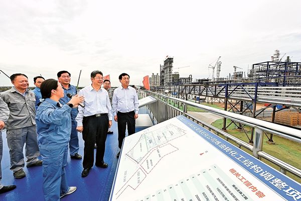 9月21日,马永生来到安庆石化炼油转化工结构调整项目建设现场,了解项目进展情况。记者 章铮 杜二根 摄影报道