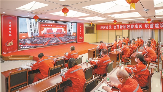 为将二十大精神第一时间传递到每一位基层员工,各单位通过“线上+线下”相结合的方式,确保收听收看全员覆盖。华北油田奋战在一线的干部员工通过广播、主流网站等权威平台及时学习二十大报告。华北石化以“集中看与自主学相结合”的方式,组织全体干部员工收看开幕盛况。西部钻探干部员工通过“学习强国”“铁人先锋”学习平台收听收看直播,采取党支部集中学习、邀请抗美援朝老战士、团员线上分享等多种形式学习二十大精神。