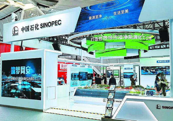 11月8日,2022年世界互联网大会“互联网之光”博览会在浙江乌镇开幕,270余家中外企业参展。中国石化亮相博览会,重点展示在关键信息基础设施安全防护、智慧工业等“数字化工业生态”方面的成果。图为中国石化展台。金丹红摄沈秋文