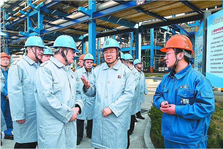 3月17日,马永生在齐鲁石化CCUS装置现场调研。记者程阳王敬华摄影报道