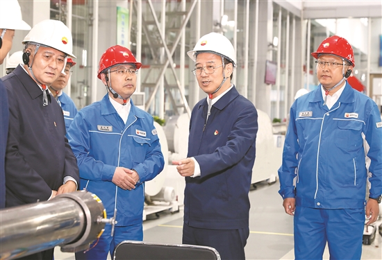 在大庆油田装备制造集团力神泵业公司电泵制造厂,戴厚良详细了解安全生产、质量管理、技术服务等情况。许书晨 摄