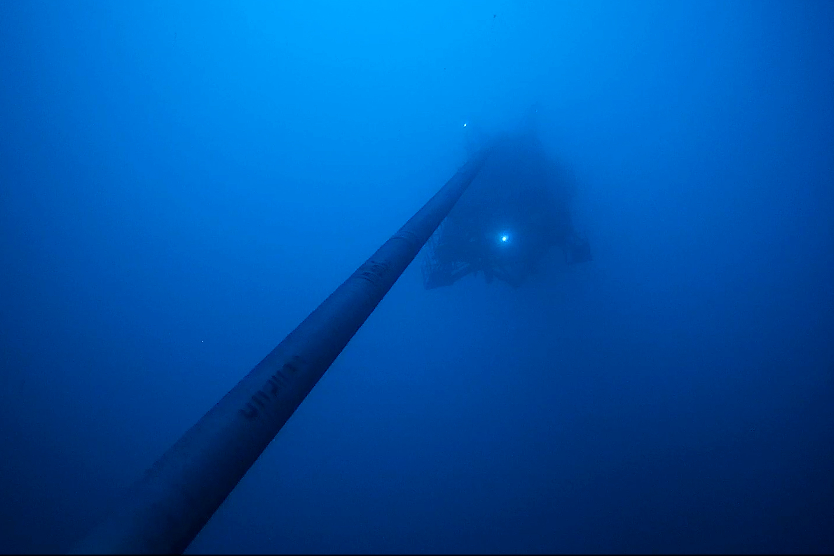 海管入水铺设到近千米的海底(摄影韩庆)