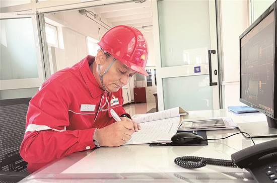 艾斯卡尔·艾山正在记录装置运行参数。