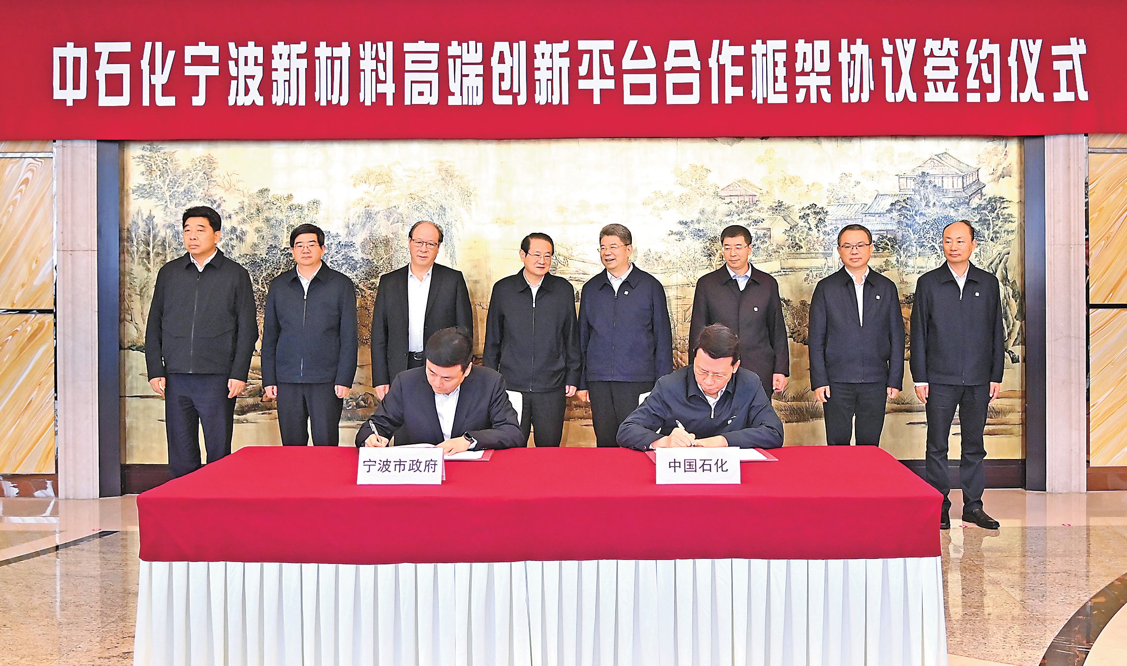 随后,马永生、易炼红共同出席中石化宁波新材料高端创新平台合作框架协议签约仪式。按照协议,中国石化、宁波市将聚焦国家新材料发展重大战略和产业发展重大需求,共建以现有的中石化宁波新材料研究院有限公司为基础的中石化宁波新材料高端创新平台。平台建成后将为长三角石化集群产业基础高级化、产业链现代化提供重要技术支撑。