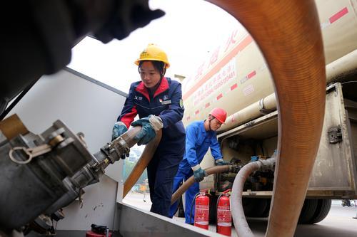 入冬以来,安徽石油认真做好防冻、防滑、防火、防中毒的冬季“四防”工作,狠抓设备静态管理、动态监测和隐患排查,坚决防止阀门、管道等设施冻裂,确保生产经营安稳运行。图为12月10日合肥石油中心加能站员工与承运商司机进行卸油作业。孙德荣 摄