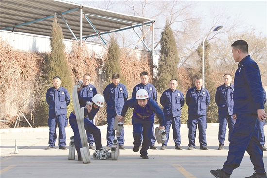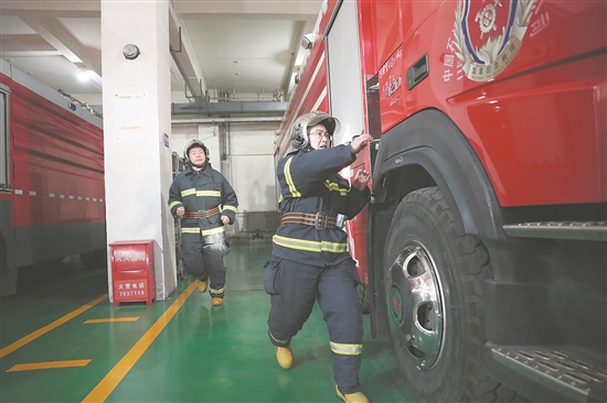 对于消防支队来说,专业技能和体能训练必不可少。在这里,相关的训练每天都在进行着。“耗时近1分钟了,速度再快点!”14时,车坤远对正在参与登车应急演练的两位队员喊道。