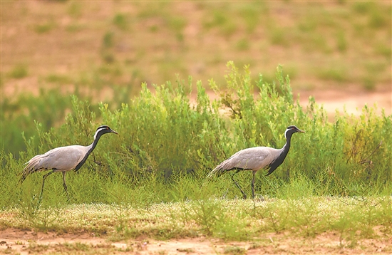 栖息在长庆油田苏里格南作业分公司气区的蓑羽鹤。
